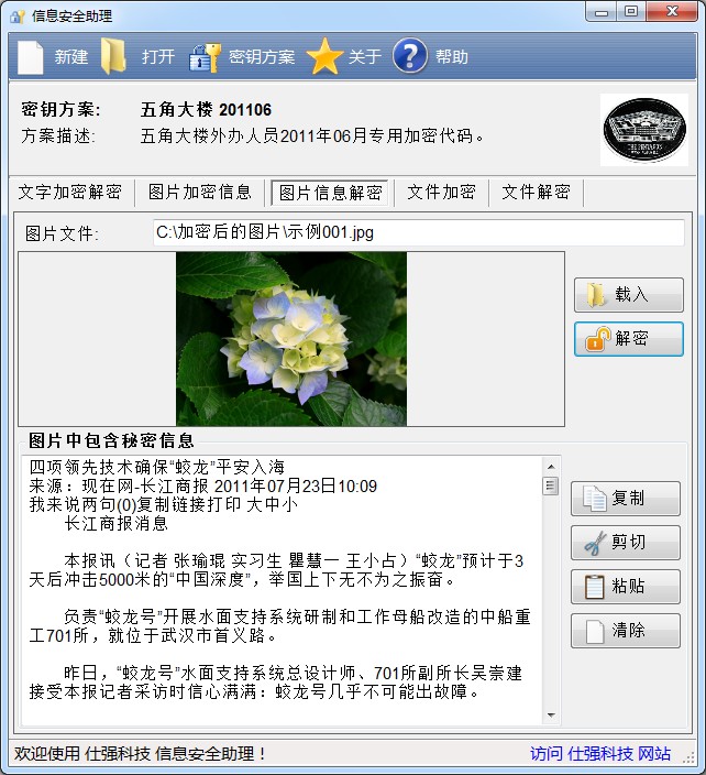 同时,信息安全助理可以把原始消息加密后隐藏到图片或照片中,伪装后的信息更安全。