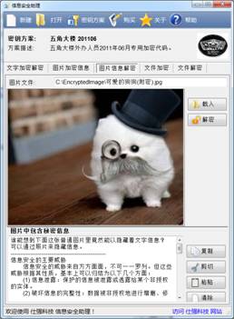 用任何看图软件都可以正确的显示图片,但是,没有信息安全助理和正确的密钥的话,是无法弄明白可爱的狗狗到底有什么内涵。