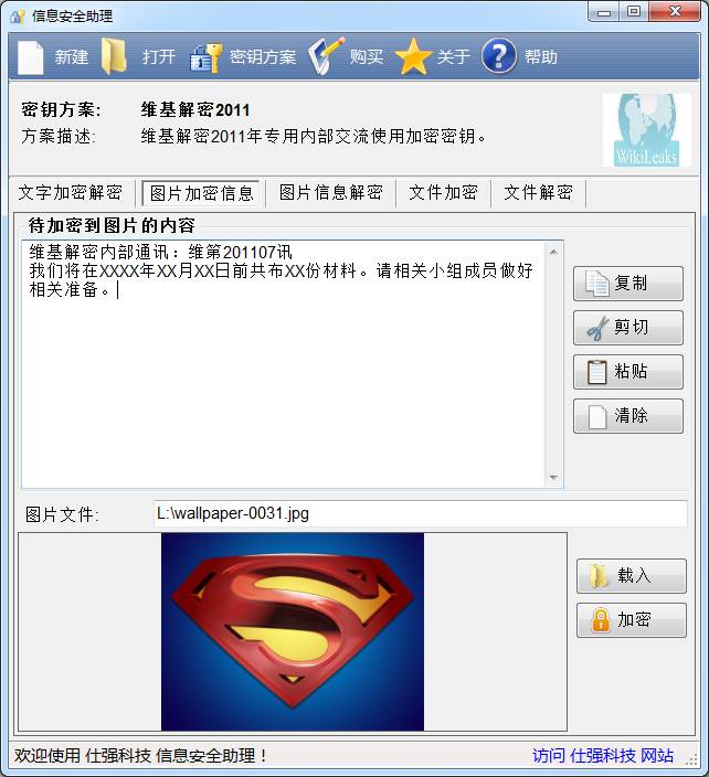 将文字信息加密后并保存在图片中是一个很棒的主意。信息安全助理可以帮助您实现。